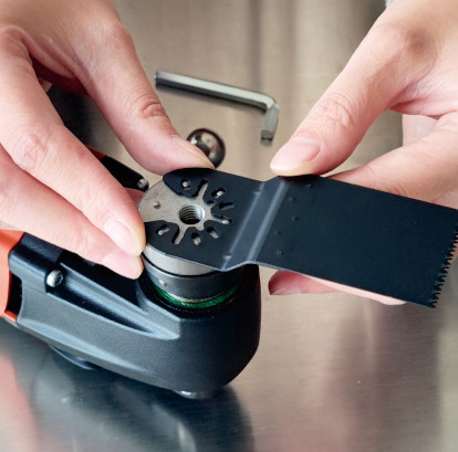 سوراخ ها را تراز کنید و تیغه اره را قرار دهید